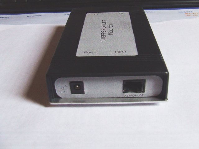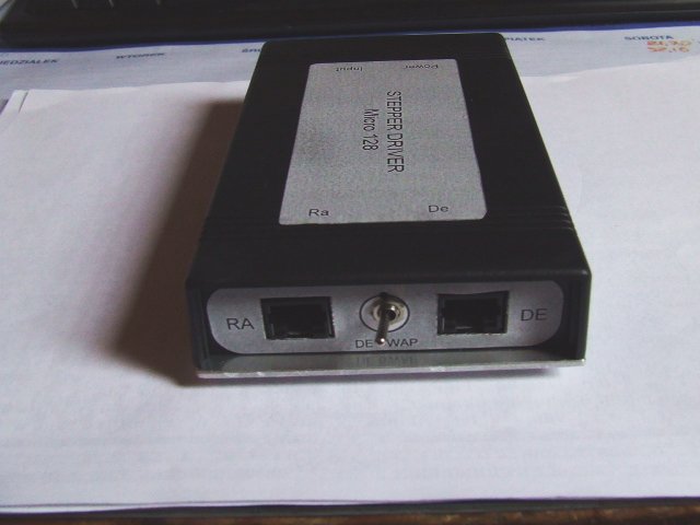 | Z jednej strony znajdują się gniazda zasilania oraz wejście sygnałowe a z drugiej gniazda silników dla kanałów Ra i Dec oraz przełącznik kierunku ruchu w kanale Dec Opis zawiera schemat, rysunek montażowy płytki ioraz rysunek druku prosty i odwrócony dla metody transferowej. Na schemacie pokazany został tylko jeden kanał sterowania (otoczony czerwoną linią przerywaną), drugi kanał jest identyczny. Przerywaną, niebieska linią otoczona została część układu dotyczącą konwersji DC/DC, i która dla silników o małej oporności nie jest konieczna. Podobnie, na rysunku montażowym pokazane zostały tylko te elementy, które dotyczą części wspólnych układu dla obu kanałów i jednego z kanałów. Montaż w drugim kanale jest identyczny. Duży stopień podziału kroku sterownika pozwala na bardzo płynną pracę silników i redukcję niezbędnej przekładni mechanicznej napędu teleskopu a sterowanie PWM prądu w uzwojeniach silnika zapewnia dobre właśności dynamiczne silników. Maksymalna prędkość pracy sterownika to ok. 12kHz (12000 kroków/sek) dla każdego z kanałów |