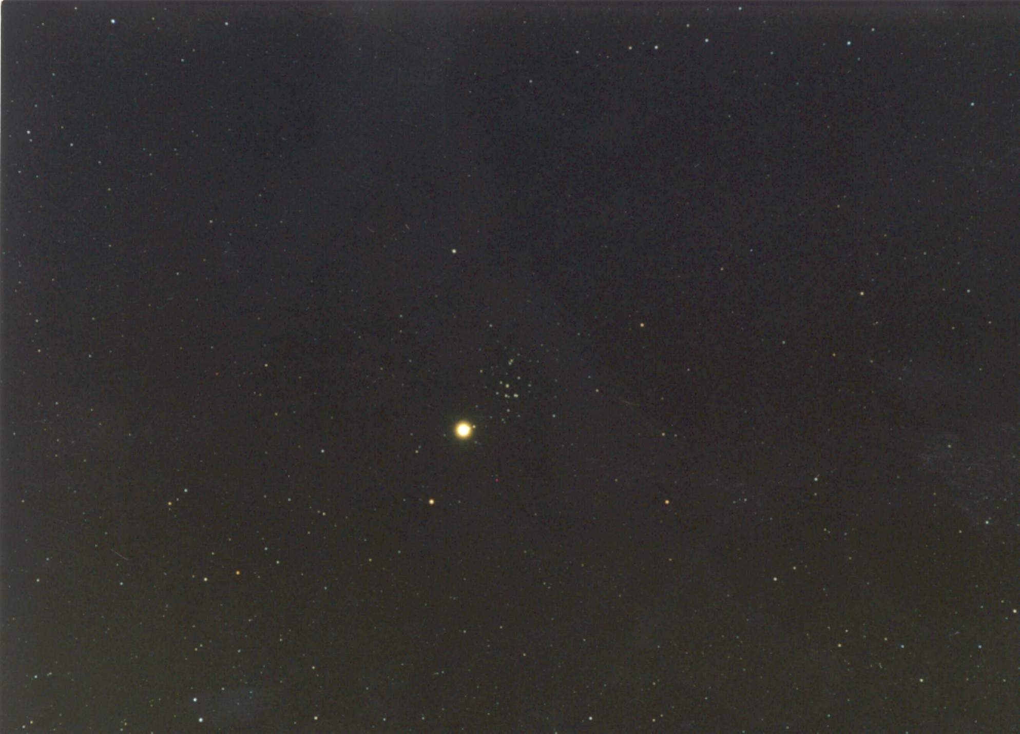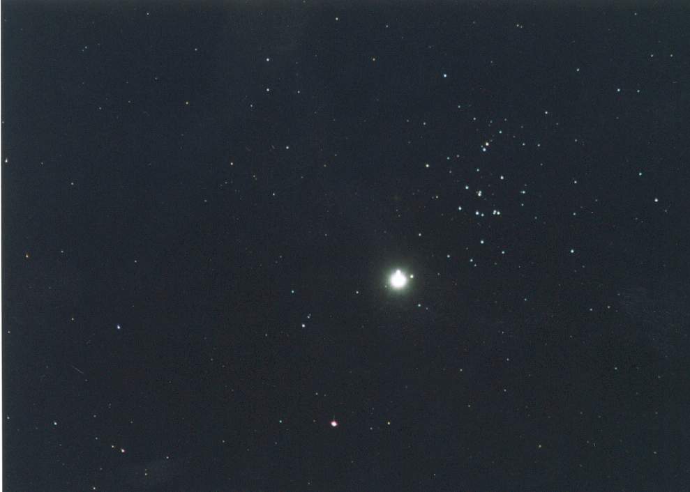 Zdjęcie nr 4 to także Jowisz na tle gwiazdozbioru Raka - widoczna gromada M44 -obiektyw hanimex 135/2.8 -czas ekspozycji ok. 8 minut |