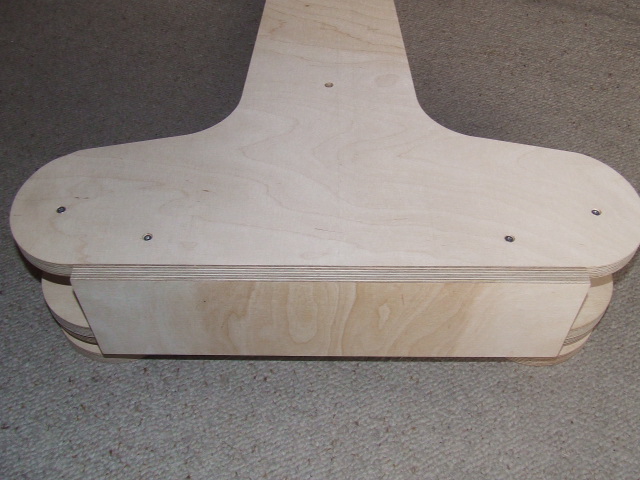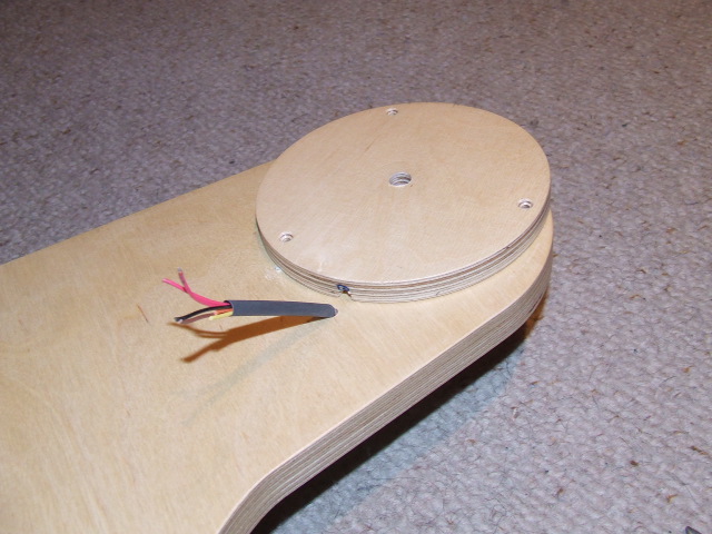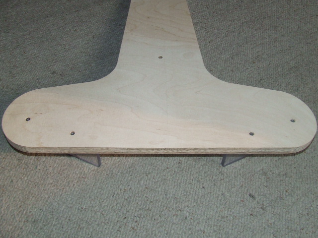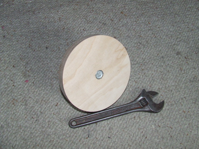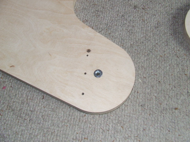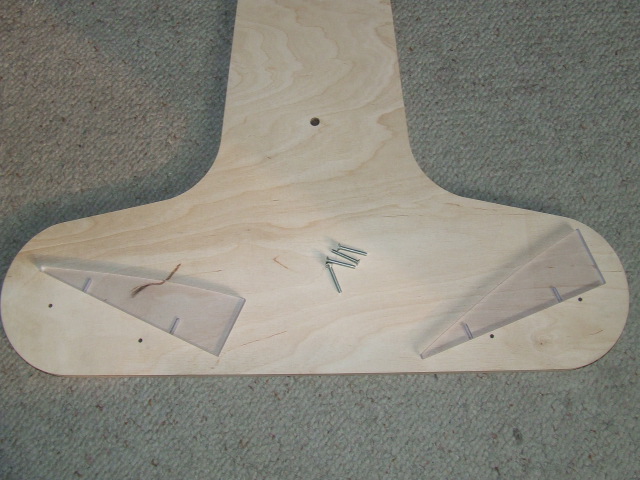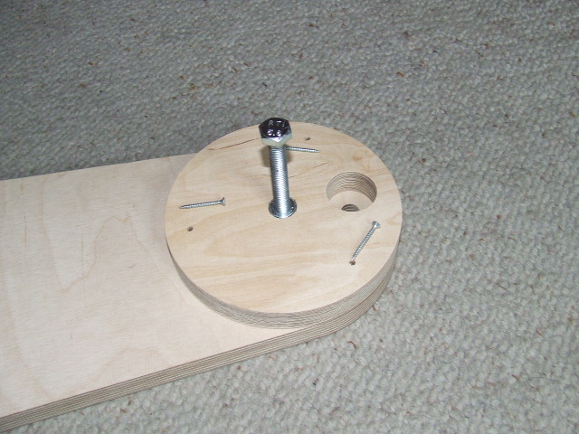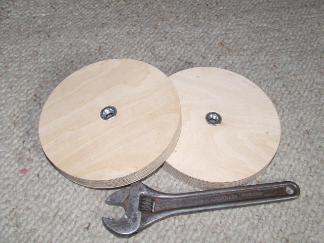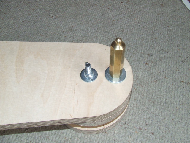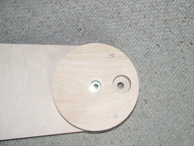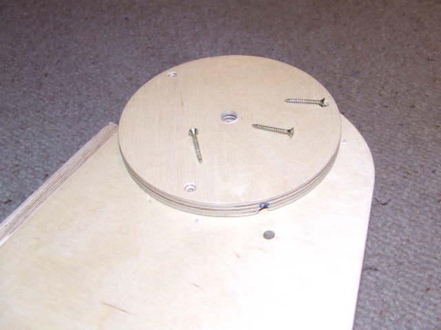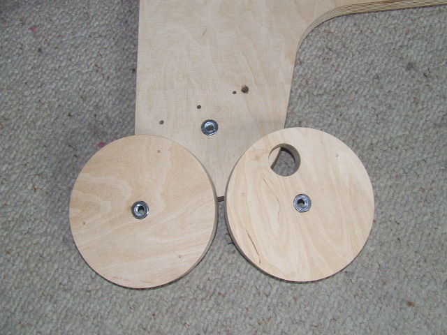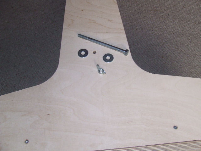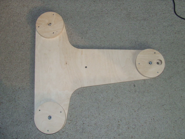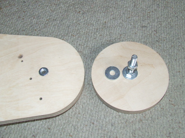 Step 2 - Preparing playwood elementsAll You need to mount equatorial platform is: hammer, screwdriver universal key or M10 key, sand paper (size 200-300), painting staff, transparent or coloured varnish. All palywood elements should be on start polish with sand paper and painted first time. When all elements be dry, polish it again with sand paper and clean off dust. Dry and cleaned elements should be painted second time. Perfectionists can repead polishing and painting third time ;-). Picture shows how to recognize top surface of bottom plate. This side has bigger whole for screw nut. |