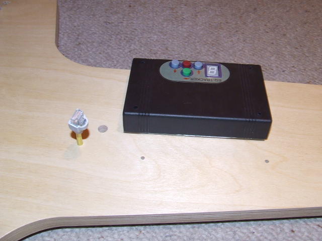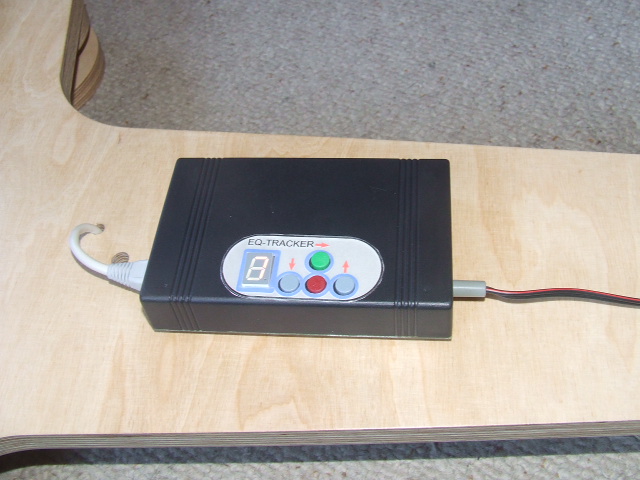 Step 13 - Stepper driver mountingStepper driver, called EQ Tracker, is delivered as ready to mount element. First connect driver cable to the Ra ax socket in driver. Driver is assembled on top side of bottom plate with 4 screws from bottom side. Driver has battery cable and optional connector which can be used with additional power suply. |