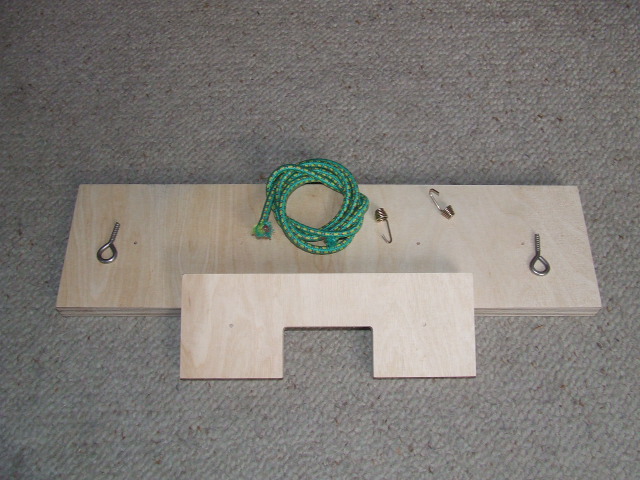 Step 14 - Transport shield mountingTransport shield allow to carying equipment during transport as well when platform is 'out of duty', Transport shield consist front cover, flexible rubber and central screw. Front cover consist with two playwood plates and two circle ended screws. First connect playwood plates with small screws. Next, mount two circle head screws. Flexible rubber is ended with small hooks. To set transport shield first place front cover on place, next connect rubber with circle ended screws and strech it over south bearing pivot. Place top plate on place and connect all together with M10 screw and two washers and butterfly nut. Now platform is ready to transport or can wait for the next clear sky. |
