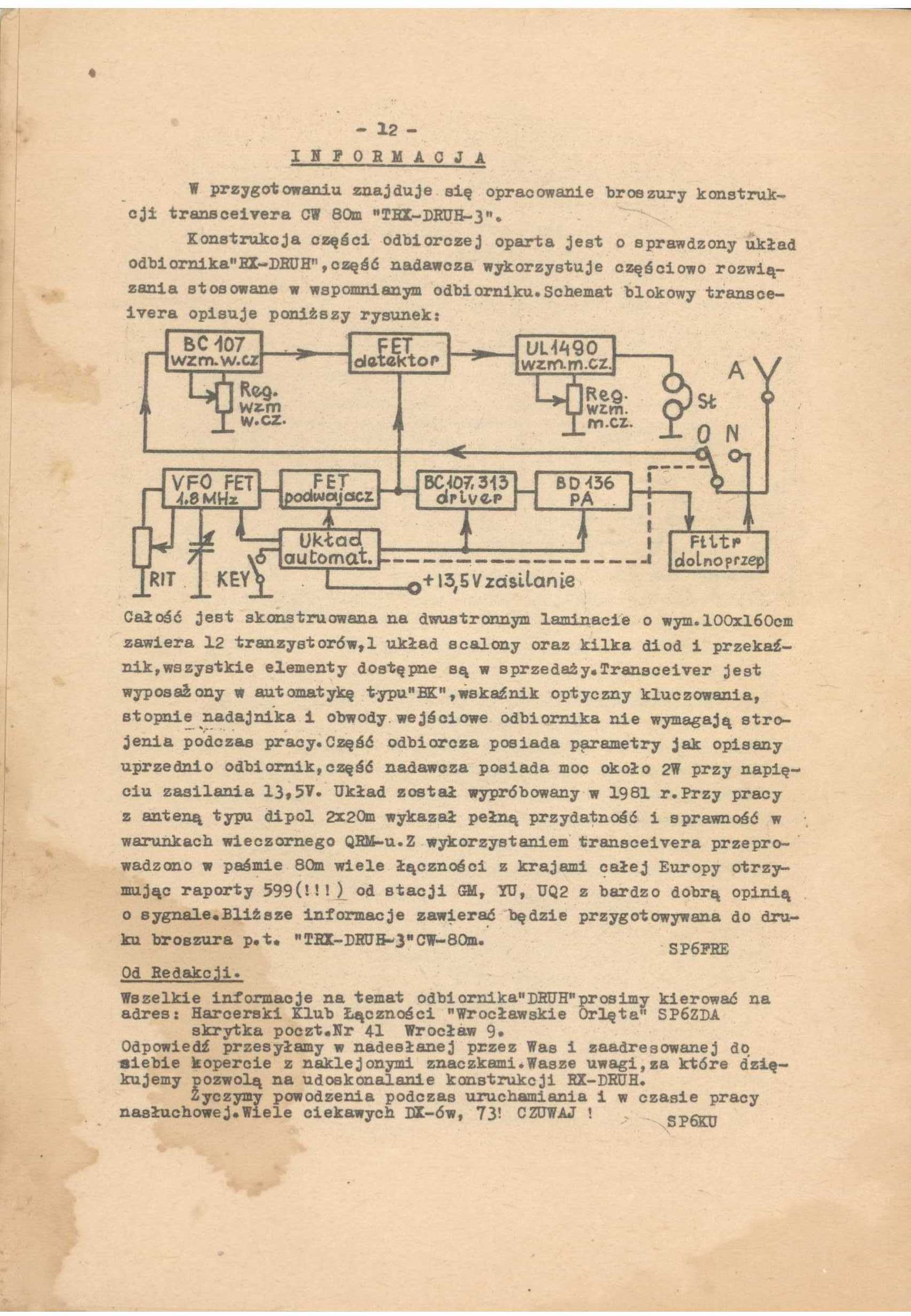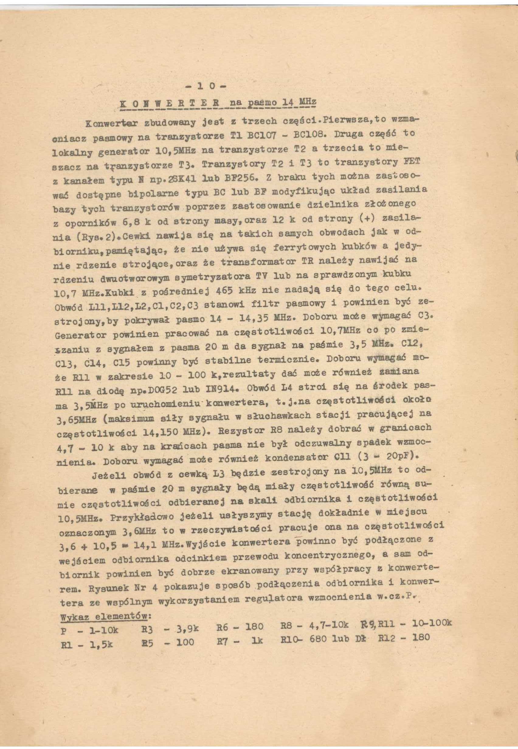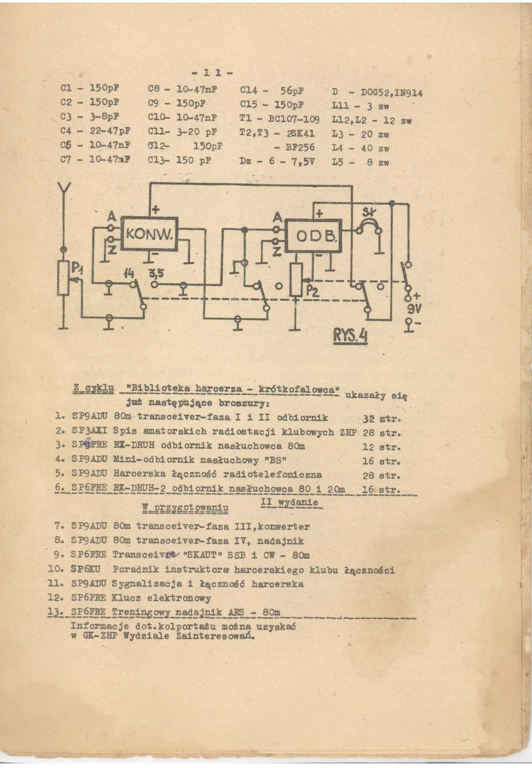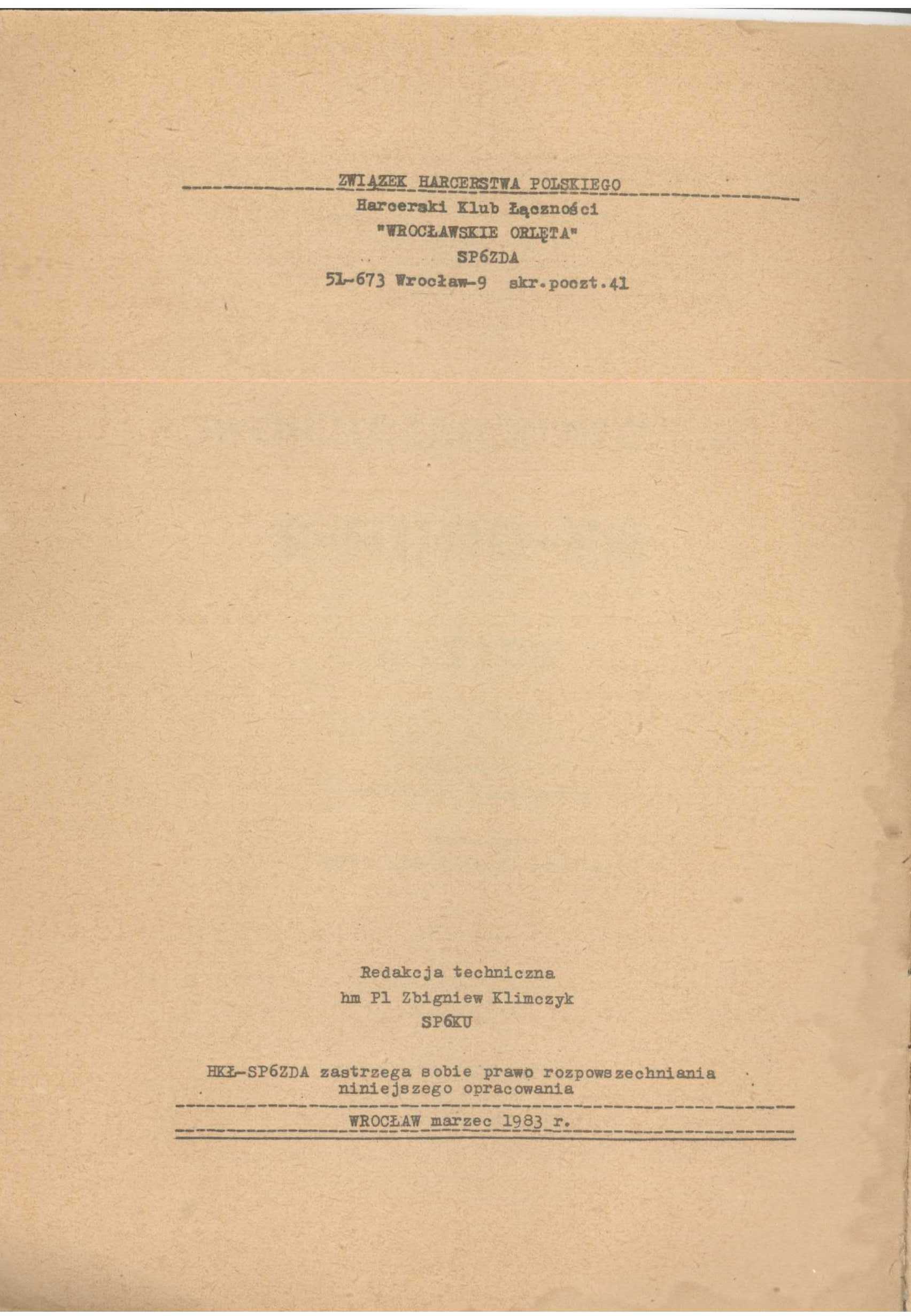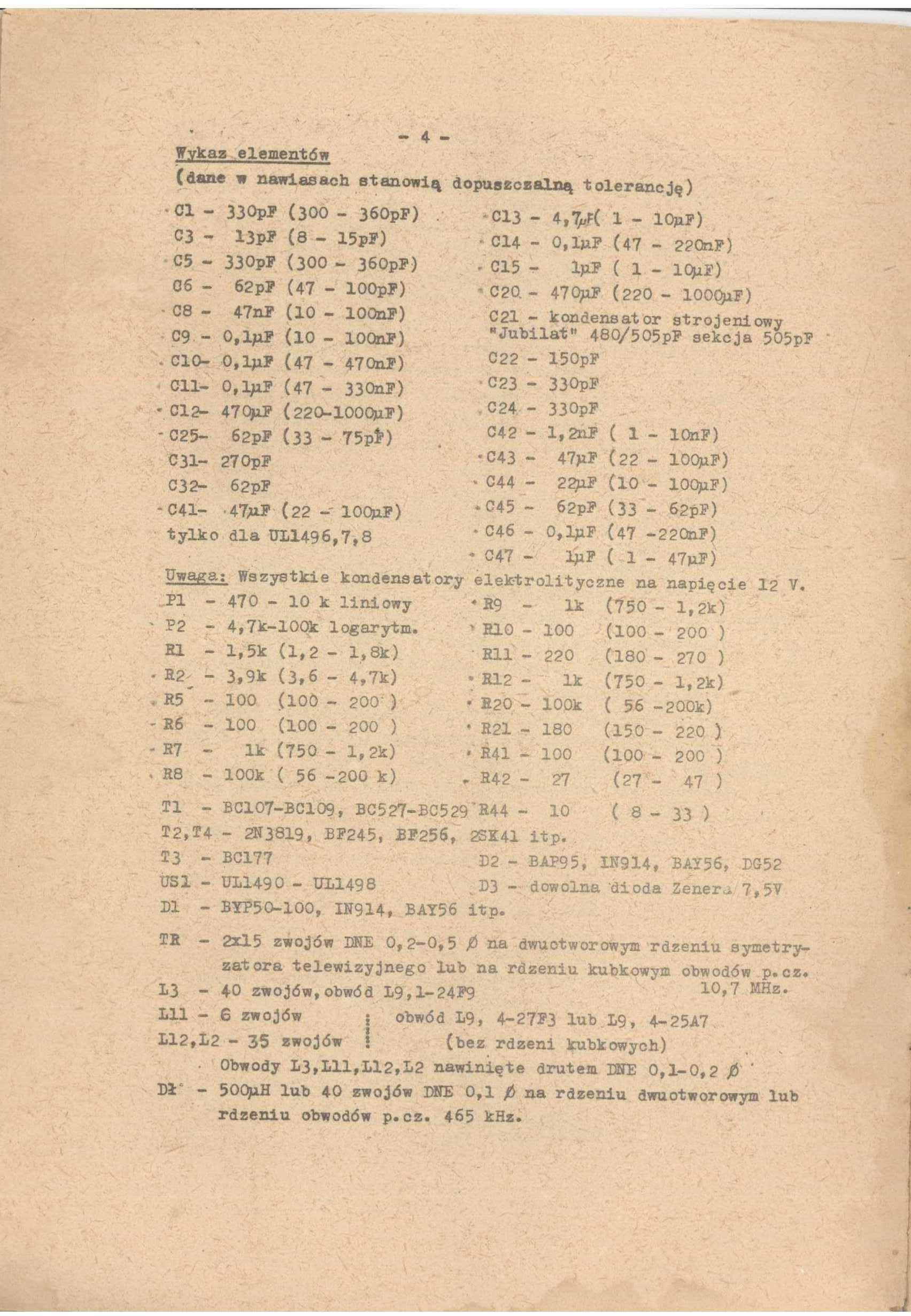 Dokumentacja składa się z kilkunastu stron i zawiera szczegółowy opis montażu i uruchomienia odbiornika mający służyć jako manual przy powielaniu konstrukcji przez harcerzy z drużyn łączności ZHP. Jak widać czas obszedł się surowo z papierem dokumentacji, który w tych czasach nie był najwyższej jakości ;-) |