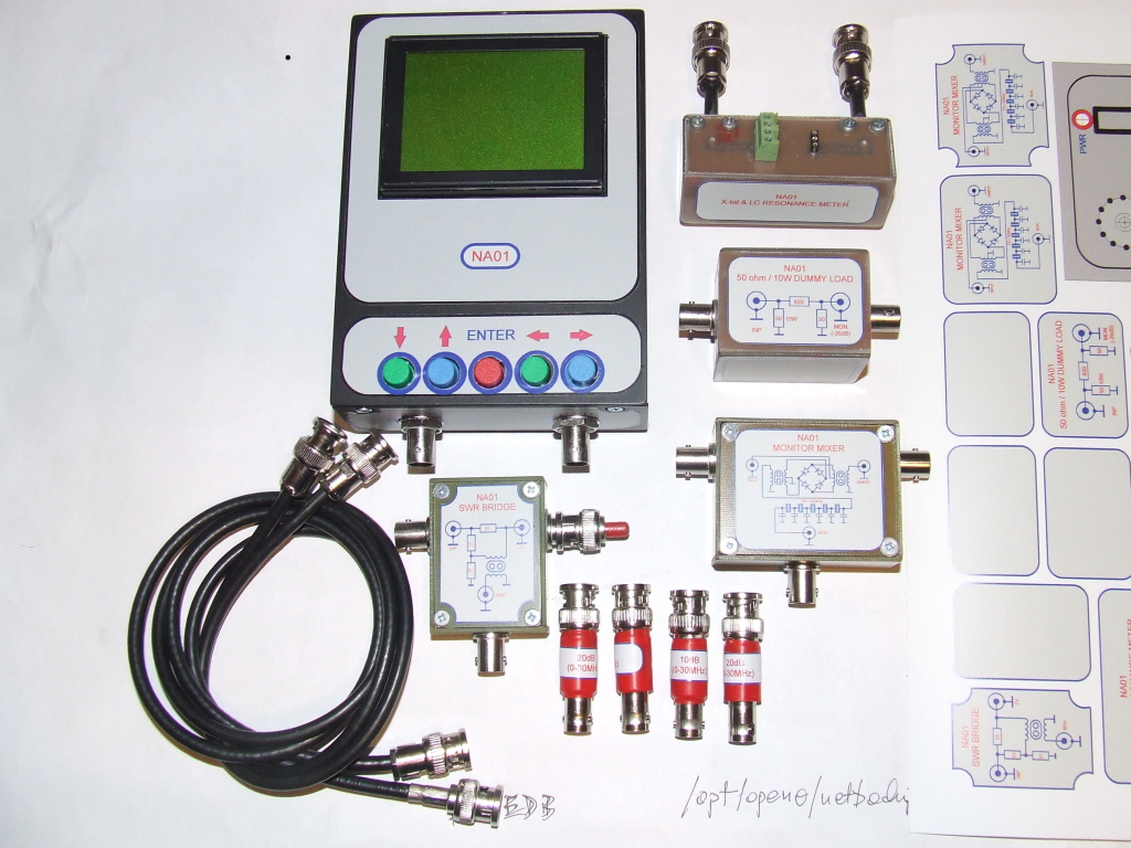 Podstawowy układ NA01 pozwala na pomiar charakterystyk amplitudowo- częstotliwościowych biernych układów działajacych w paśmie 1-30MHz a z zastosowaniem tłumików również na analizę układów aktywnych (wzmacniających). Zasadą jest aby w przypadku układów aktywnych wtrącone w tor pomiarowy tłumienie nie było mniejsze niż maksymalne wzmocnienie układu w paśmie. Jednak dopiero po użyciu odpowieniej, z reguły prostej w swojej konstrukcji przystawki mniernik pokazuje, że potrafi w zasadzie zmierzyć większość parametrów pomocnych w ocenie pracy badanego urządzenia. W planach mam dołączenie do funkcji miernika jeszcze tylko bezpośredniego pomiaru częstotliwości. |