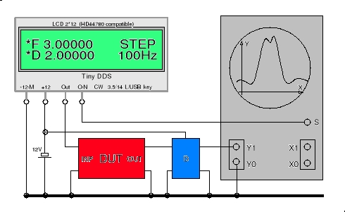 Po zakończeniu programowania układu Tiny DDS do funkcjonowania jako przestrajany generator wobulatora nie mogłem odmówić sobie wykonania kilku podstawowych testów działania układu. Z posiadanych w szufladzie elementów zbudowałem więc filtr kwarcowy oraz filtr pasmowy. |