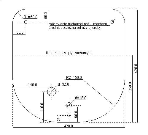 nóżki poziomujące, otwór 18mm na regulację pochylenia płyt ruchomych oraz
