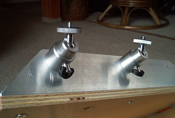| Przyrządy fotograficzne mocowane mogą być za pomocą dwóch przegubowych uchwytów fotograficznych. Taki uchwyt znajduje się na przykład w zestawie kamerek CCD Vesta. Ponieważ uchwyty są dość delikatne to należy dążyć do tego, aby mocowane przyrządy ustawiane były tak, aby były możliwie blisko punktu równowagi. | ![]() |