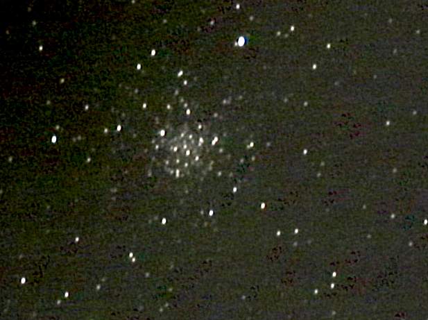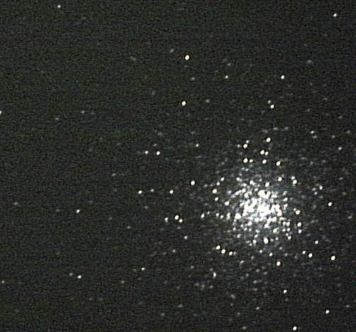 | Gromada M13 wykonana około północy, wysokość ok. 70 stopni, złożenie ok. 20 klatek naświetlanych w czasie 20 sek. każda. W procesie obróbki użyłem dark frame oraz korekty za pomocą funkcji histogram i sharp mask. | ![]() |