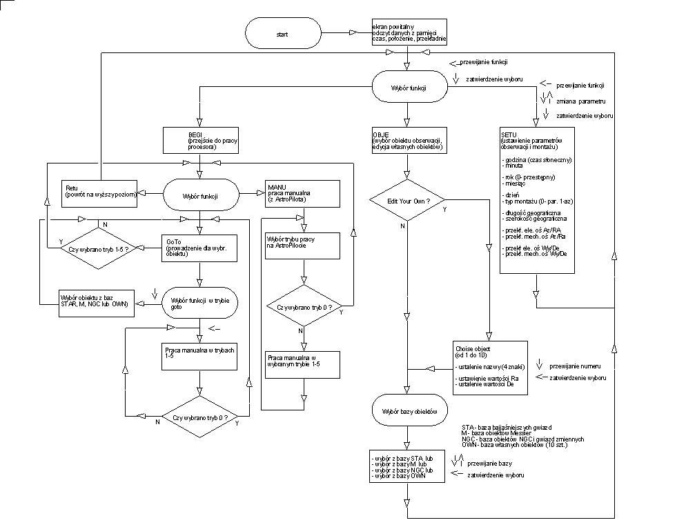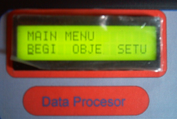 W trakcie tej procedury wyliczane są podstawowe wielkości parametrów na jakich działa później algorytm urządzenia. Główne menu programu zawiera 3 pozycje: BEGIN (skrót od begin) – prowadzący do sterowania goto OBJE (skrót od object) prowadzący do wyboru i edycji bazy danych o obiektach SETU (skrót od setup) prowadzący do ustawień inicjujących |