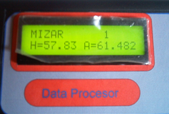 | Praca goto możliwa jest pod warunkiem, że AstroPilot ustawiony jest w trybie 0. Wybór trybu goto powoduje, że system zaczyna sterować montażem śledząc ostatnio wybrany obiekt w jednej z baz danych. Na ekranie pojawia się nazwa wybranego wcześniej obiektu oraz jego parametry lokalne H (wysokość w stopniach nad horyzontem) oraz A (azymut liczony od południka lokalnego). Wartości te zmieniają się w czasie a równolegle do pojawiających się zmian system generuje na wyjściu impulsy sterujące silnikami w obu osiach montażu. Jeśli współrzędna H osiąga wartość zerową system przestaje sterować montażem (obiekt znika pod horyzontem). Podobnie, jeśli wybrany obiekt ma w danej chwili współrzędną H mniejszą od zera to system nie generuje żadnych impulsów sterujących. W trybie goto w linii nazwy wybranego do sterownia obiektu pojawia się stojąca z prawej strony liczba wyrażająca w setkach ilość impulsów sterujących jakie ma w danej chwili do wykonania system (suma dla obu osi) aby montaż nadążył za obiektem. W stanie śledzenia wartość ta wynosi przeciętnie 0 lub 1. |