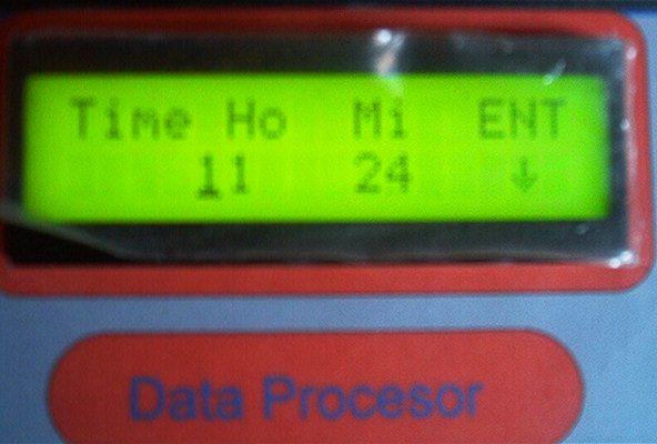 | Procedura ta służy do ustawienia czasu, położenia geograficznego obserwacji oraz parametrów montażu. W celu wyboru tej opcji należy za pomocą klawisza (<-) przesunąć kursor na pozycję SETU i zatwierdzić ją klawiszem strzałki w dół. Procedura setup zawiera szereg następujących po sobie ekranów umożliwiających ustawienie najwyżej dwóch parametrów na jednym ekranie. Pierwszy ekran pozwala na ustawienie czasu. Czas w procesorze odmierzany jest przez specjalizowany układ sterowany rezonatorem kwarcowym. Zaleca się kontrolę ustawienia czasu co kilka, kilkanaście dni. Czas należy ustawiać bez uwzględnienia czasu letniego. Oznacza to, że w okresie obowiązywania czasu letniego ustawiona godzina powinna różnić się od godziny czasu letniego o –1, czyli dla obserwacji o godzinie 22 zegar procesora powinien wskazywać godzinę 21. Pozycja Ho odpowiada godzinie, pozycja Mi odpowiada minucie, pozycja ENT służy to zatwierdzenia ustawień na całym ekranie a więc obu pozycji Ho i Mi. W celu ustawienia godziny należy za pomocą klawisza (<-) przesunąc kursor pod wartość leżącą pod oznakowaniem Ho i za pomocą strzałek kierunkowych w górę i w dół należy ustawić odpowiednią godzinę. Następnie używając klawisza (<-) należy kursor ustawić pod wartość leżącą pod oznakowaniem Mi i podobnie, za pomocą klawiszy strzałek w górę i w dół należy ustawić właściwą minutę. W każdej chwili możliwa jest korekta ustawień przez przesunięcia kursora pod odpowiednią pozycję i jej zmianę. Jeśli ustawienia czasu są właściwe należy zatwierdzić dane przesuwając kursor na pozycję symbolu graficznego strzałki w dół a następnie należy użyć klawisza strzałki w dół w celu zatwierdzenia tego ekranu (ustawionych wartości). |