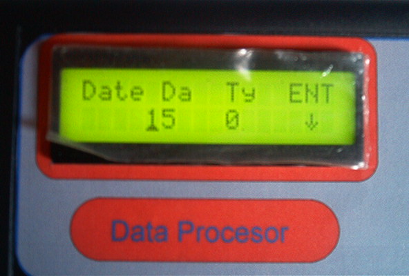 | Kolejny ekran pozwala na ustawienie dnia miesiąca (Da) oraz typu montażu (Ty). Dla montaży paralaktycznych należy ustawić wartość Ty na 0 a dla montaży azymutalnych należy ustawić wartość Ty na 1. Zatwierdzenie danych odbywa się na pozycji strzałki oraz klawisza strzałki w dół na AstroPilocie |