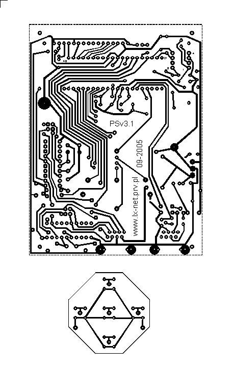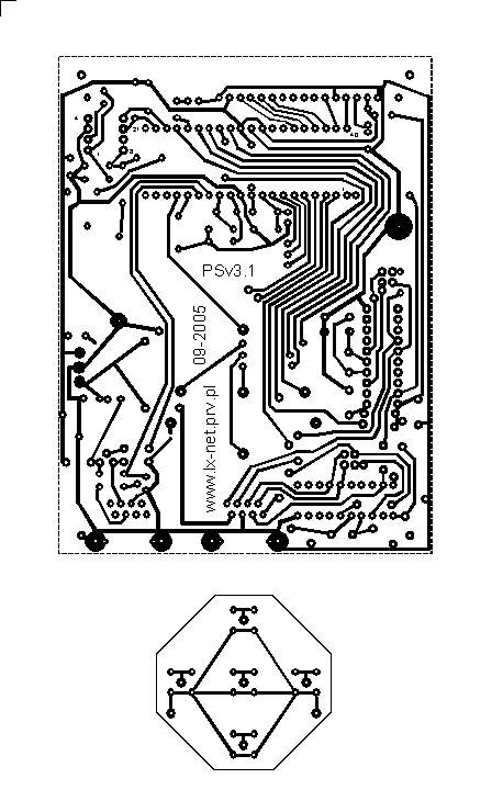 Nowy procesor sygnału zbudowany jest podobnie do swojego pierwowzoru, posiada jednak kilka dodatkowych funkcji ale przede wszystkim może działać samodzielnie z dowolnym sterownikiem silników krokowych mającym wejścia sterujące kierunku i zegarna na poziomie TTL (0-5V). Zestaw wszystkich rysunków można znaleźć w pliku word-a |