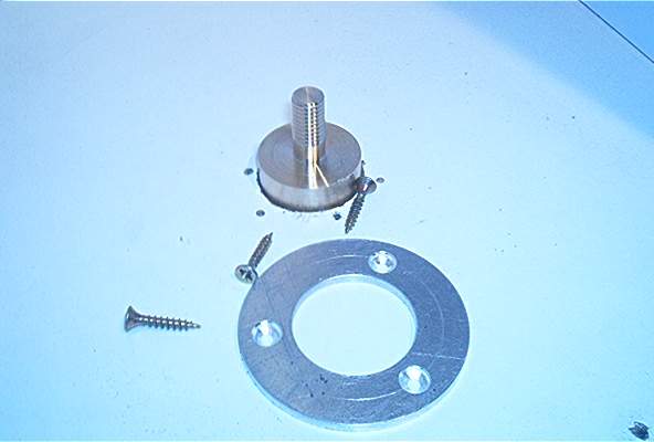 | Właściwe łożyskowanie ruchomej podstawy względem osi azymutalnej zapewnia pierścień o średnicy wewnętrznej 32mm mocowany do ruchomej podstawy w trzech punktach za pomocą wkrętów do drewna. | ![]() |