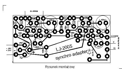 Montaż wzmacniacza należy rozpocząć od wykonania zwor Z1-2 zaznaczonych na zielono. Następnie należy wlutować układy scalone i pozostałe elementy. Połączenia z gniazdem pilota, silnikiem oraz gniazdem zasilania można wykonać w sposób trwały przez bezpośrednie wlutowanie przewodów lub za pomocą szpilek lutowniczych oraz rozłączalnych wtyków. Prawidłowo zmontowany układ nie wymaga regulacji i działa od razu. Przed uruchomieniem należy upewnić się czy elementy zostały wlutowane prawidłowo jeśli chodzi o wyprowadzenia i polaryzację.