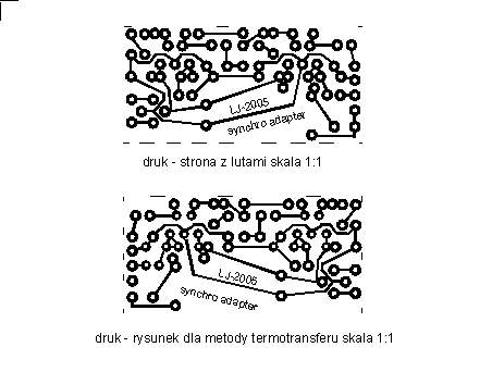 Pokazane rysunki to grafika w skali 1:1. W szczególności drugi z rysunków nadaje się do bezpośredniego zastosowania w wykonywaniu płytki drukowanej metodą termotransferową. Całość pokazanej dokumentacji dla układu TDA2040 można pobrać również w pliku word-a. |